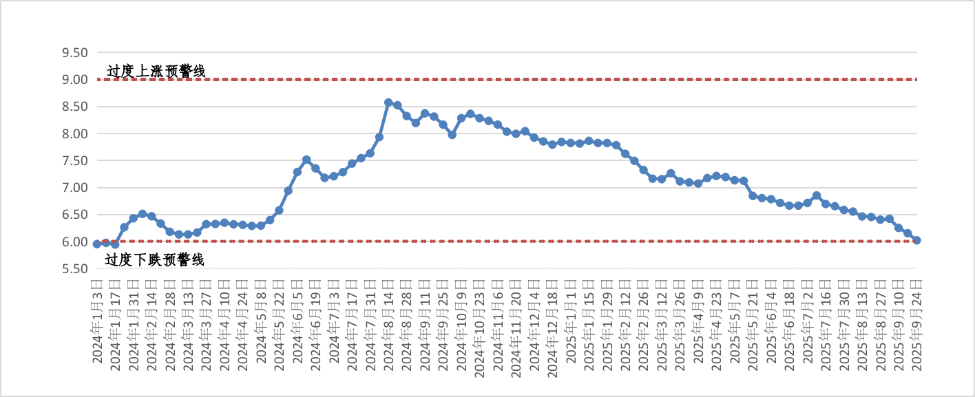 9月份,随着生猪出场价格下降和玉米批发价格小幅上涨,我区猪粮比价小幅下移。9月3日、10日、17日、24日全区猪粮比价分别为6.42:1、6.25:1、6.15:1、6.02:1,逐渐接近6:1的过度下跌三级预警临界值。