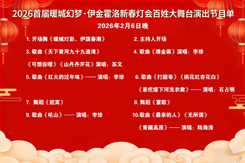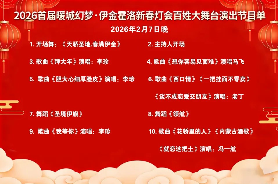 两场演出星光熠熠,陕北民歌大咖齐聚,各展风采,更有《暖城灯影、伊旗春潮》《天骄圣地·春满伊金》等特色开场舞,以及《迎宾》《领航》等精彩舞蹈表演。歌舞相融,氛围感拉满,带你沉浸式感受新春的热闹与陕北文化的厚重魅力。