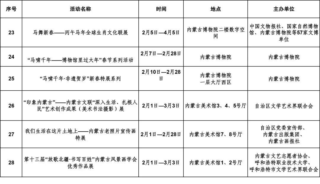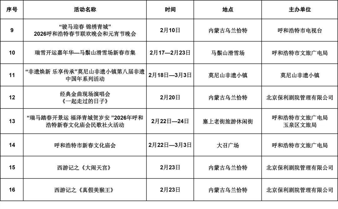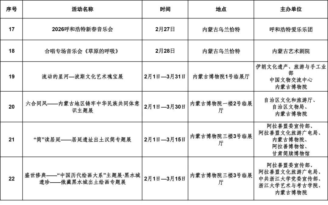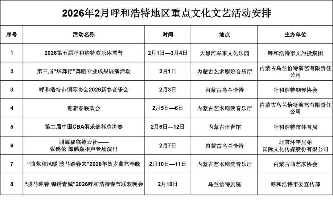 2026年2月呼和浩特地区重点文化文艺活动安排