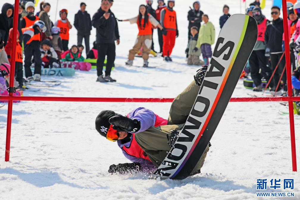 3月23日,内蒙古自治区扎兰屯市举行2024—2025雪季封板滑春雪活动,滑雪爱好者们通过猛龙过江、钻杆挑战、飞跃挑杆等趣味滑雪竞赛游戏,告别滑雪季,享受春日滑雪乐趣。