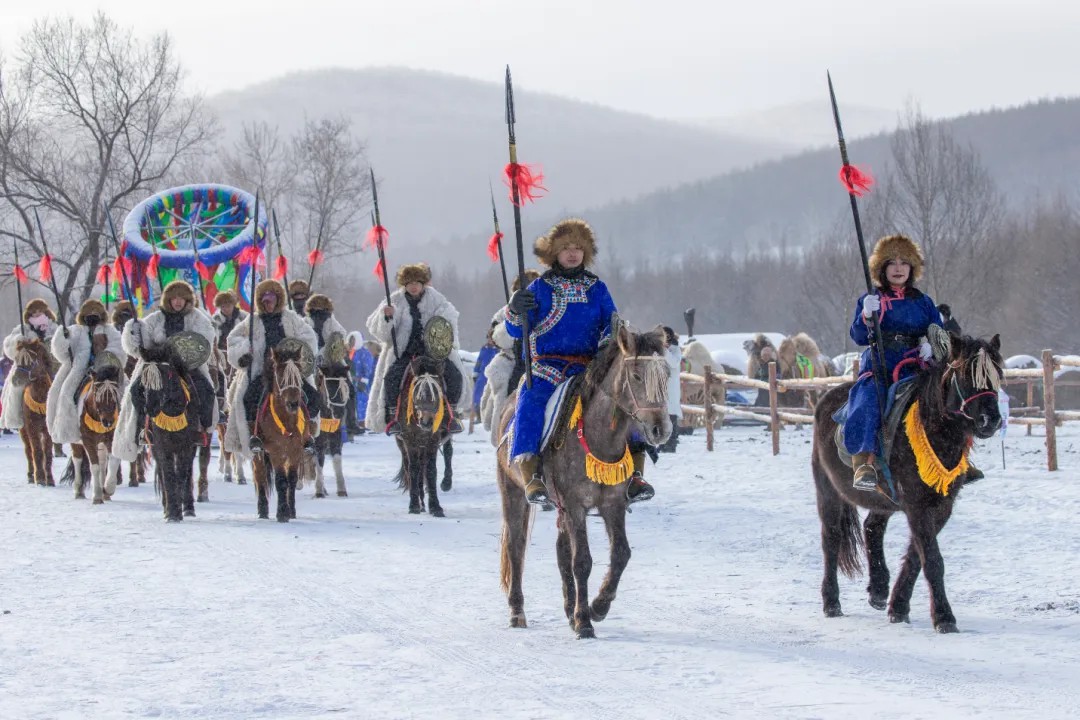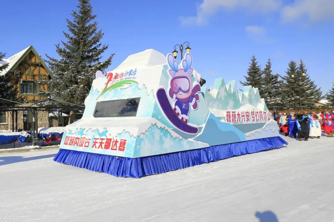 花车巡游,开启阿尔山旅游度假区冬季的奇妙之旅。身着传统服饰的骑手英姿飒爽地骑马前行,紧随其后的是慢悠悠的赶牛车,满载着五彩斑斓的鲜花与灯饰,高大的骆驼也加入其中,它们稳健的步伐与独特的形态吸引游客目光。此外,还有身着华丽服饰的NPC,与游客亲密互动,为这寒冷的冬日带来一抹温暖与欢乐,整个巡游场景热闹非凡!