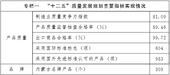 内蒙古自治区“十三五”质量发展规划