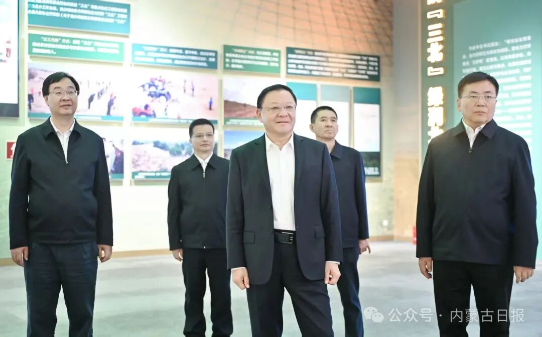 10月7日,自治区党委书记、人大常委会党组书记王伟中来到内蒙古展览馆,分别参观“牢记嘱托 感恩奋进——办好两件大事 奋力书写中国式现代化内蒙古新篇章”、“绿色长城 生态奇迹——内蒙古防沙治沙和‘三北’工程攻坚战”主题展。自治区党委副书记、自治区人民政府党组书记、呼和浩特市委书记包钢参加。