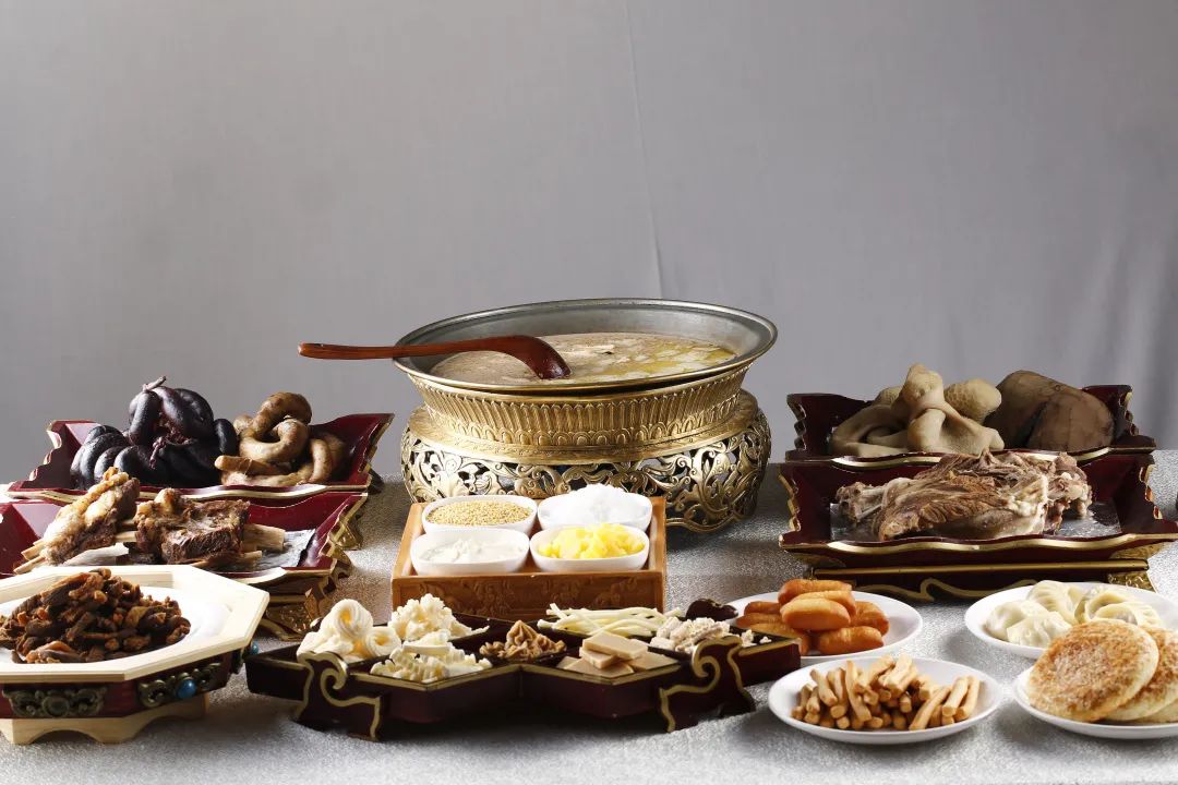 岭南广东早茶,品茶尝点,精彩之处在于“吃茶”;北方蒙古早茶,茶餐相伴,传神之韵在于“家和”。锡林郭勒蒙古早茶,其绝在于草原文脉的传承和马背民族饮食精华的集萃。由于游牧生产特点,蒙古人一日餐食的重点在于早茶。人们要在早茶上摄取足够的能量去完成一日的劳作。崭新的一天被热腾腾的奶茶唤起,早茶早已超越了本身的食物特色,而承载着一种文化、一种情感、一种仪式。当你畅游在内蒙古,你会发现无论是汉族还是蒙古族,喜欢喝奶茶的人很多。在喝茶的过程中人们分享着情感,传递着民族文化融合的绵厚深远。锡林郭勒蒙古早茶种类丰富,浓香的奶茶是核心,熬茶的技巧决定最终的味道。最普通的青砖茶经过熬制、加奶、加盐、扬茶,配上炒米、黄油、奶豆腐、奶皮,便成为一锅奶香浓郁,香滑微咸,绵长止渴的蒙古奶茶。喝它三五碗,额头上微微泛出的汗珠,让人们在浓浓的醇香中体会着温暖的味道。