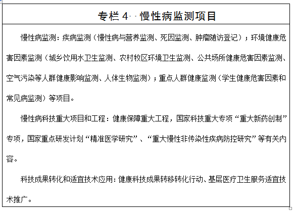 2.推动科技成果转化和适宜技术应用。系统加强慢性病防治科研布局,推进相关科研项目。进一步加强自治区临床医学研究中心和协同创新网络建设,完善重大慢性病研究体系。以信息、生物和医学科技融合发展为引领,加强慢性病防治基础研究、应用研究和转化医学研究。统筹优势力量,推进慢性病致病因素、发病机制、预防干预、诊疗康复、医疗器械、新型疫苗和创新药物等研究,重点突破精准医疗、“互联网+”健康医疗、大数据等应用的关键技术,支持基因检测等新技术、新产品在慢性病防治领域推广应用。针对蒙医药、中医药具有优势的慢性病病种,总结形成慢性病蒙医中医健康干预方案并推广应用。结合慢性病防治需求,遴选成熟有效的慢性病预防、诊疗、康复保健适宜技术,加快成果转化和应用推广。开展慢性病社会决定因素与疾病负担研究,探索有效的慢性病防控路径。在专业人才培养培训、信息沟通与共享、防治技术交流与合作、能力建设等方面积极参与国际、国内慢性病防治交流与合作。充分发挥蒙医药、中医药优势,加大蒙医药治疗慢性病研究,积极参与国际、国内慢性病防治交流与合作。