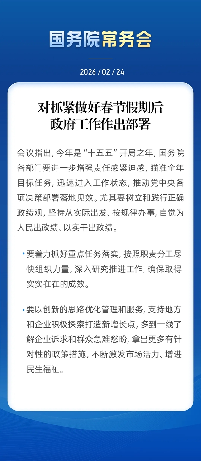 国常会对抓紧做好春节假期后政府工作作出部署