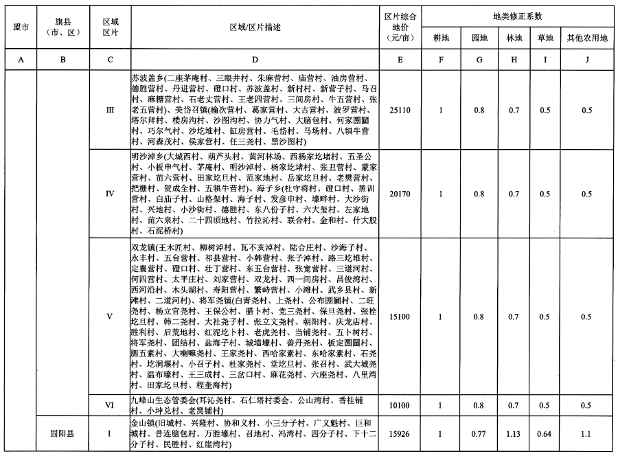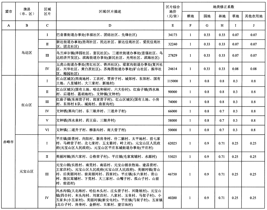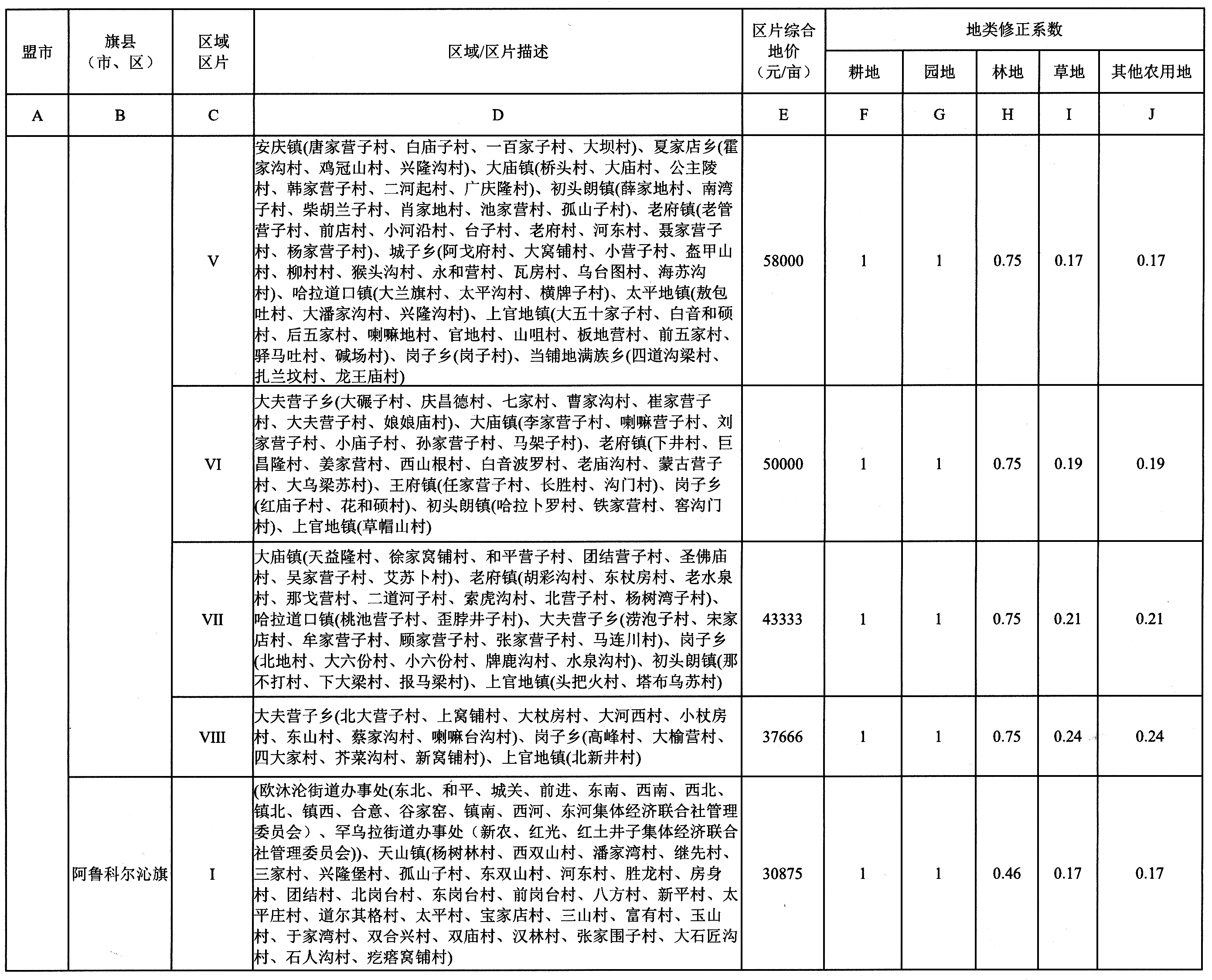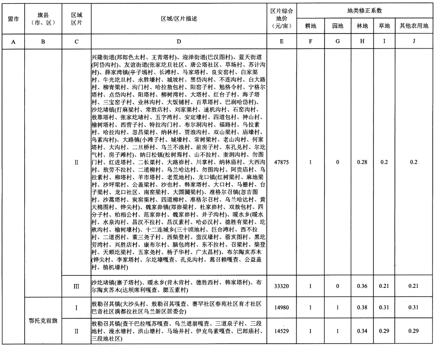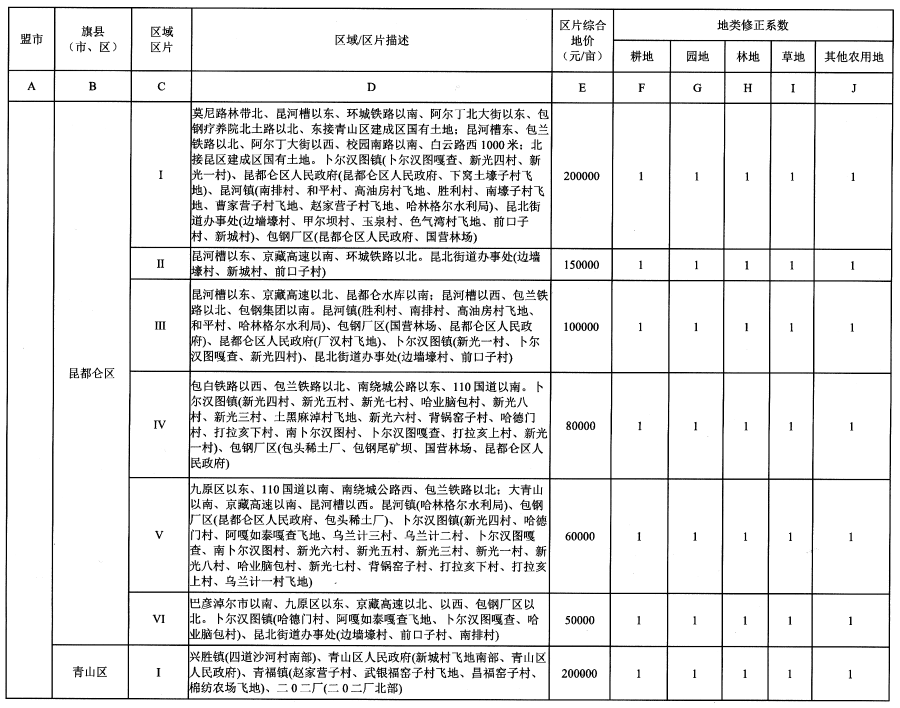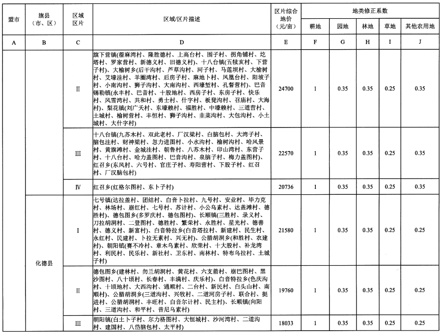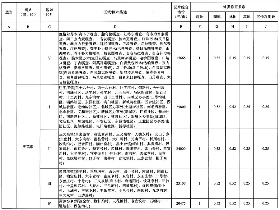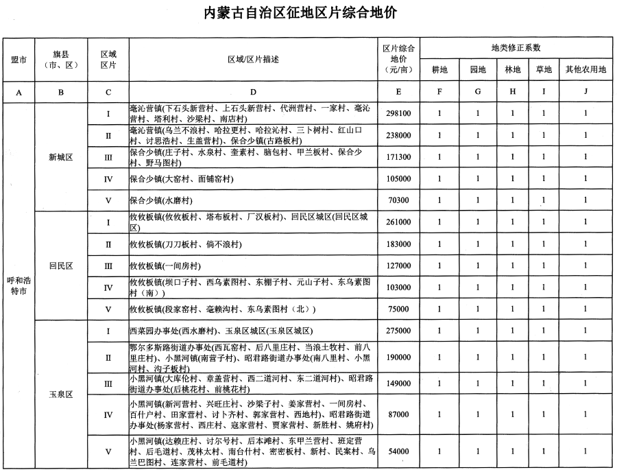 此次公布中未明确具体区片的苏木乡镇或者嘎查村组,征地补偿标准按该苏木乡镇所属旗县(市、区)或者该嘎查村组所属苏木乡镇的最高补偿标准执行。征收涉及永久基本农田的,按照所属旗县(市、区)最高标准补偿执行。