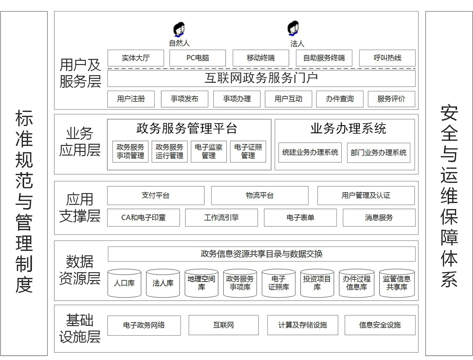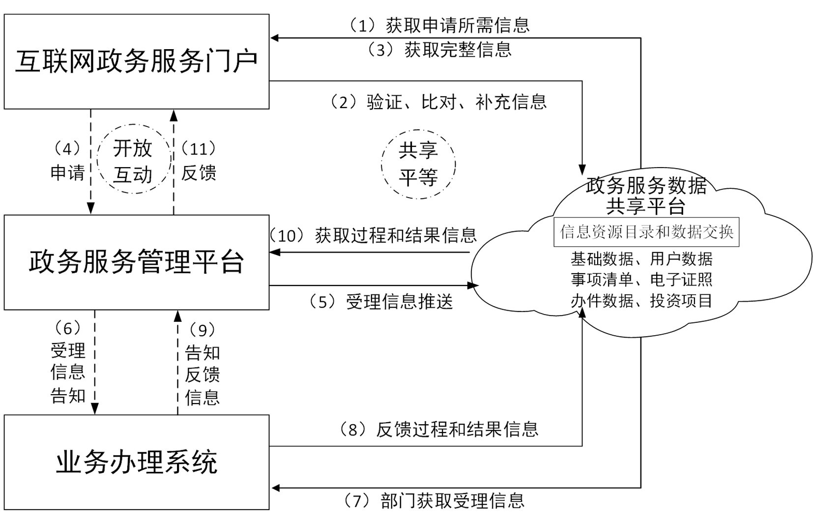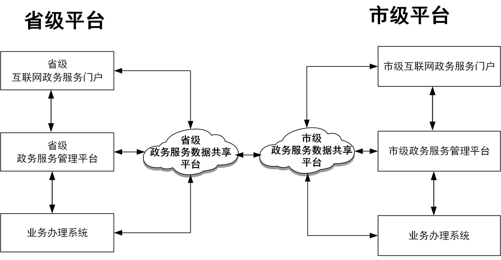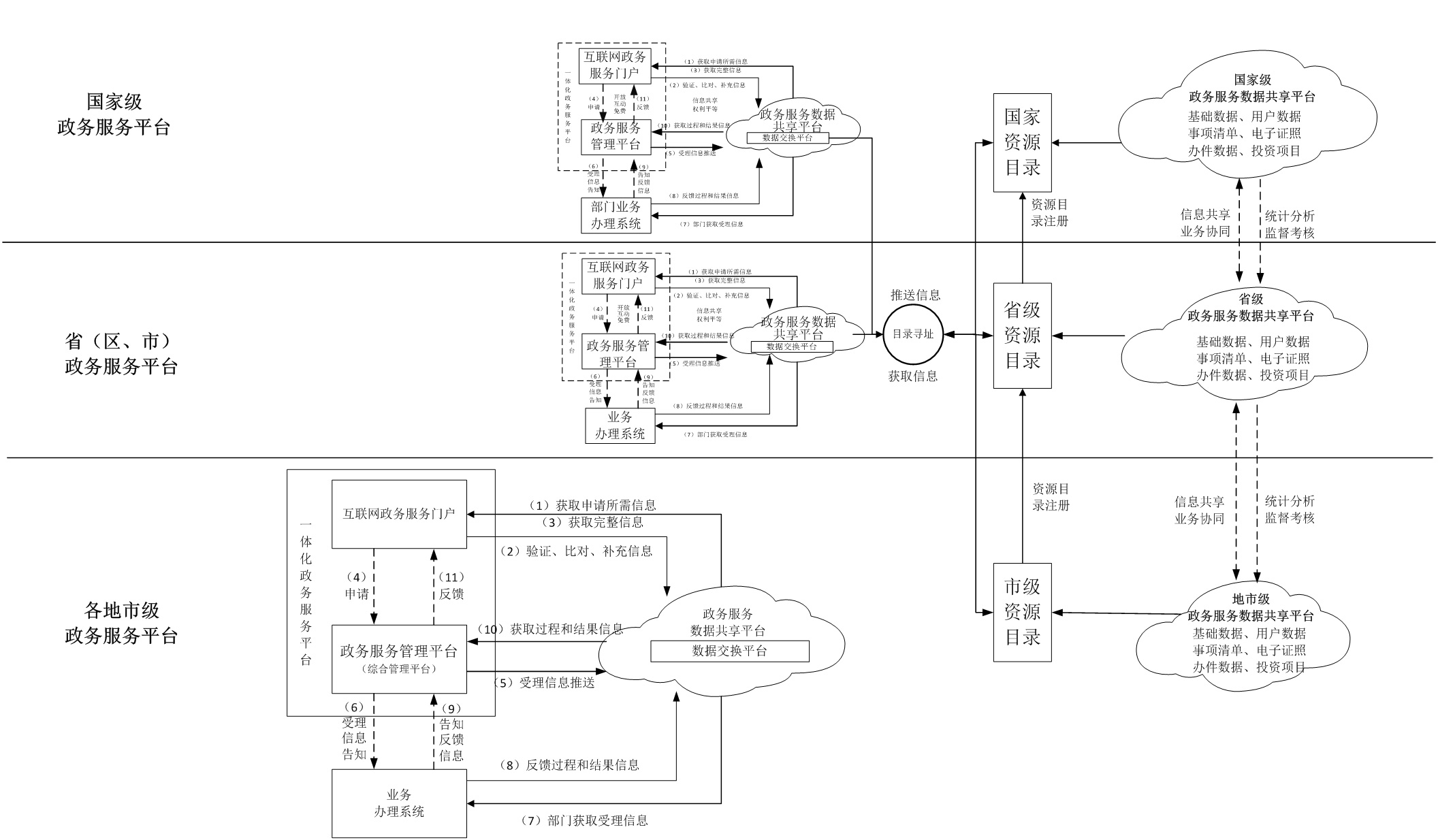 “互联网+政务服务”平台总体层级架构和信息流架构示意图