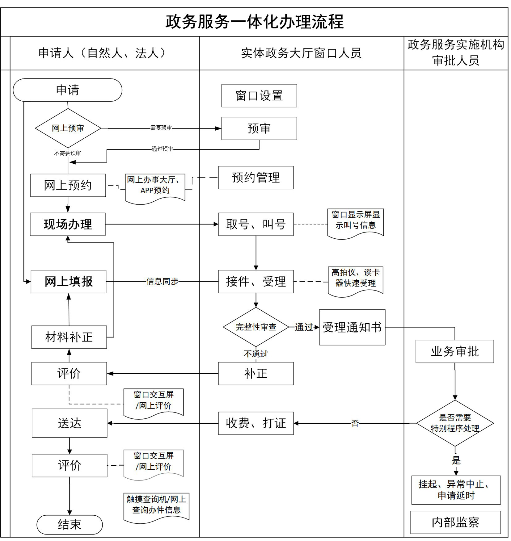 按照“互联网+政务服务”发展需要,加快推进实体政务大厅向网上延伸,整合业务系统,统筹服务资源,统一服务标准,形成线上线下功能互补、相辅相成的政务服务新模式。积极推动政务服务事项和审批办理职权全部进驻政务服务大厅,做好与网上平台融合对接,实现政务服务“一号申请、一窗受理、一网通办”,切实解决企业、群众办事在政务大厅与部门之间“来回跑”、“重复审”等问题。各级政务服务中心管理机构要按照《通知》要求,加强单位进驻、事项办理、流程优化、网上运行的监督管理,推动政务服务阳光规范运行。积极运用信息化手段,推进政务服务网和政务实体大厅紧密配合,开展预约查询、选择中介、证照寄送等创新性、多样化的便民服务,为群众提供项目齐全、标准统一、便捷高效的政务服务,让群众尽享线上线下政务服务平台融合发展的成果。