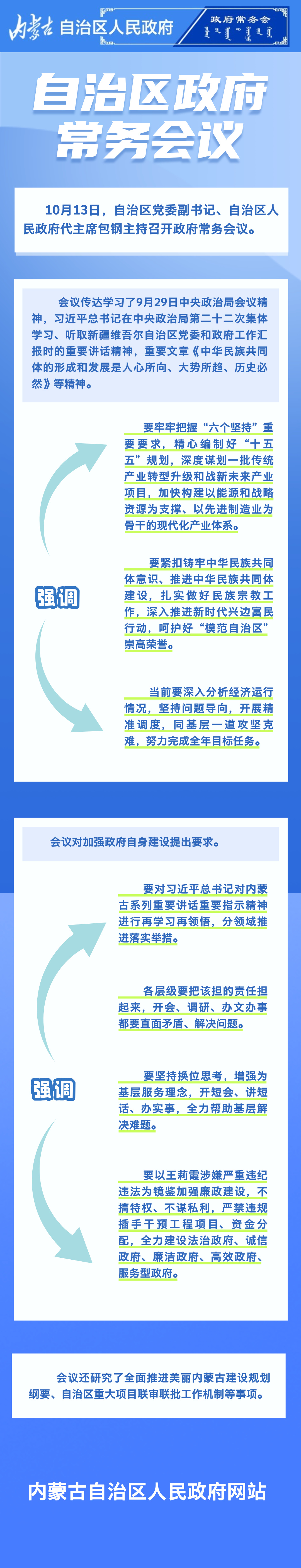 10月13日,自治区党委副书记、自治区人民政府代主席包钢主持召开政府常务会议。