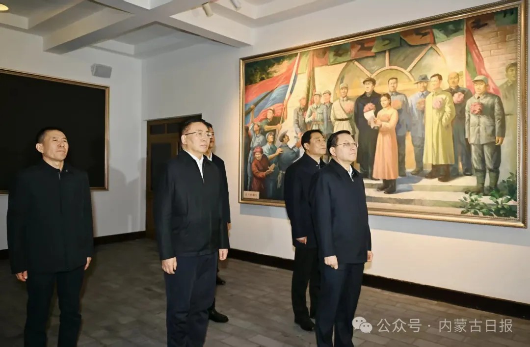 10月16日,自治区党委书记王伟中来到五一会址,认真听取讲解,仔细观看展陈,了解革命遗址遗存保护利用和红色文化传承情况。草原云·内蒙古新闻网记者 马建兵 摄